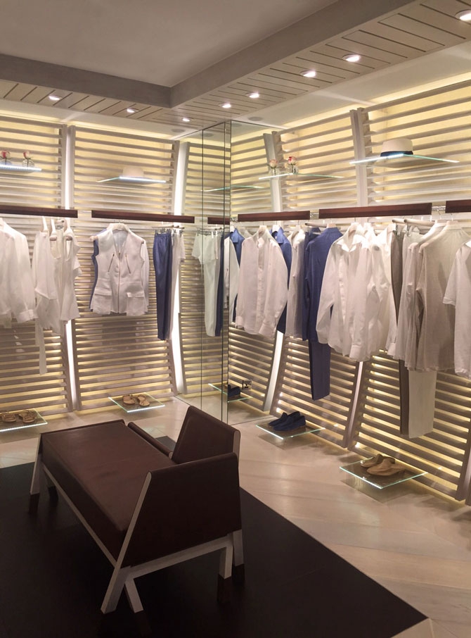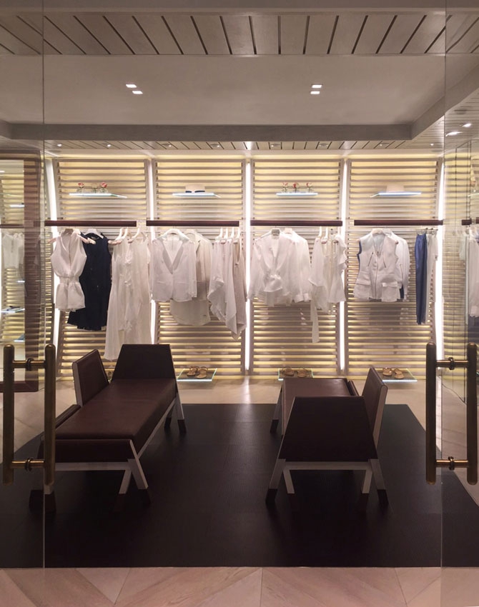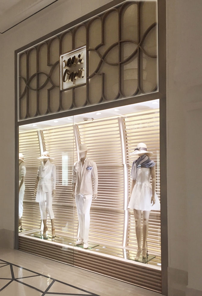 The existing concept design of the brand was adjusted to fit the environment of the Four Seasons Resort Dubai. The breathable sense of linen, which is the fabric that defines the brand, is expressed in the natural-coloured wooden cladding which were mixed with a modern touch of led lights that convey the sensation of vacations in Capri. Local elements were incorporated in the design through the use of a unique pattern on the façade.
