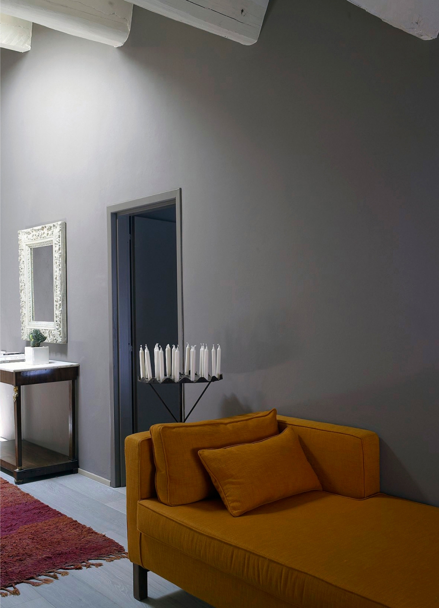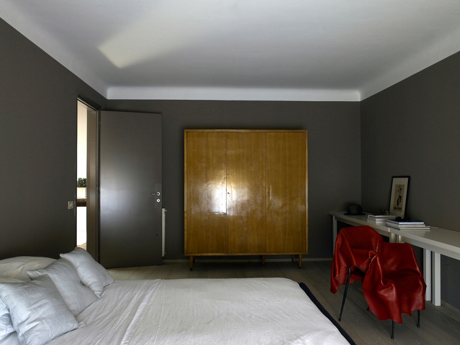 La ristrutturazione di una residenza a Pietrasanta. La gamma di colori che prevale in questo spazio è in tonalità neutre del grigio e si combina con alcuni arredi con tocchi di colore intenso per un look moderno. Un'accurata selezione di arredi vintage conferisce un'atmosfera piacevole e personale.