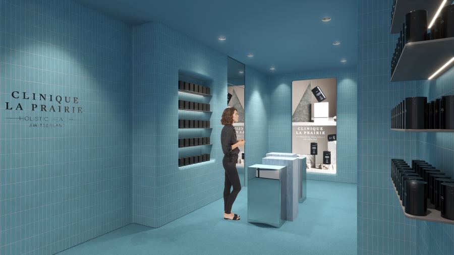 Clinique La Prairie’s boutique at Marina Bay Sands brings Swiss wellness excellence to Asia through a refined, immersive retail concept. The space blends clinical precision with luxury featuring soft blue tiles, marble islands, and ambient lighting to create a calm, elevated environment. This boutique offers a curated experience of holistic health, longevity, and beauty in the heart of Singapore’s most iconic destination.