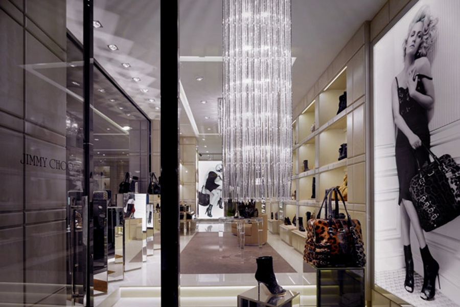 The flagship store in the heart of the Quadrilatero della Moda shopping district reflects the global store concept design and evokes the architectural glamour of a 1940’s boutique. The ground floor displays a showcase of products in a gallery-like setting with a series of mirrored podiums, whereas the lower level is conceived as a series of intimate salons. A colour palette of ivory, pale rose, lilac and sand is combined with elegant decorative elements: mother of pearl finishes, satin boiserie wall panelling and crystal drop chandeliers. All which create a fascinating environment and atmosphere.