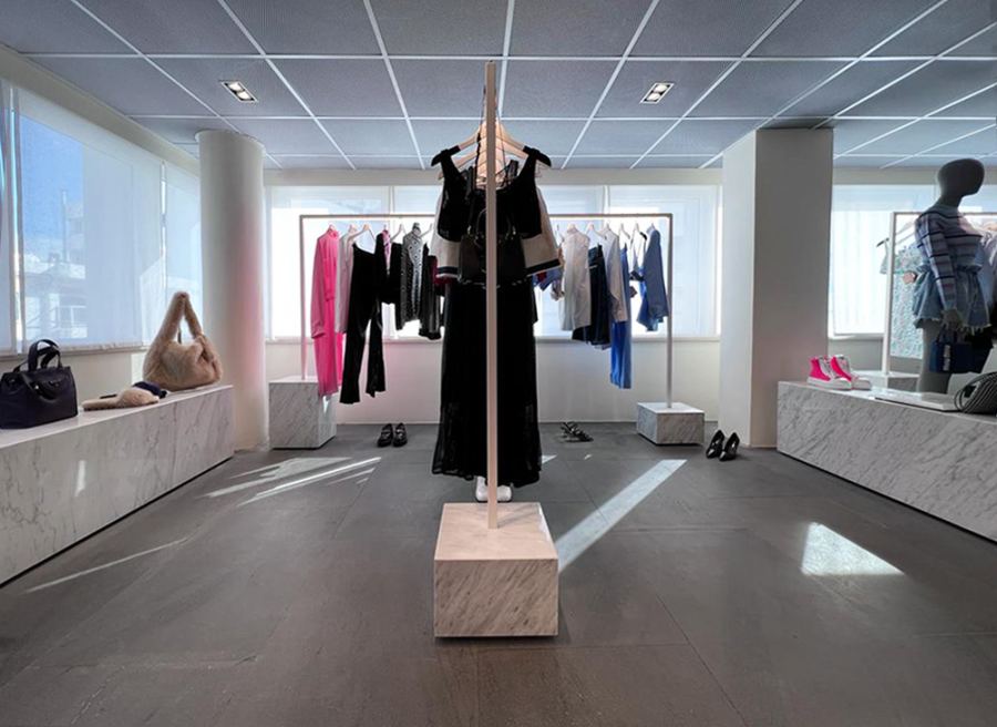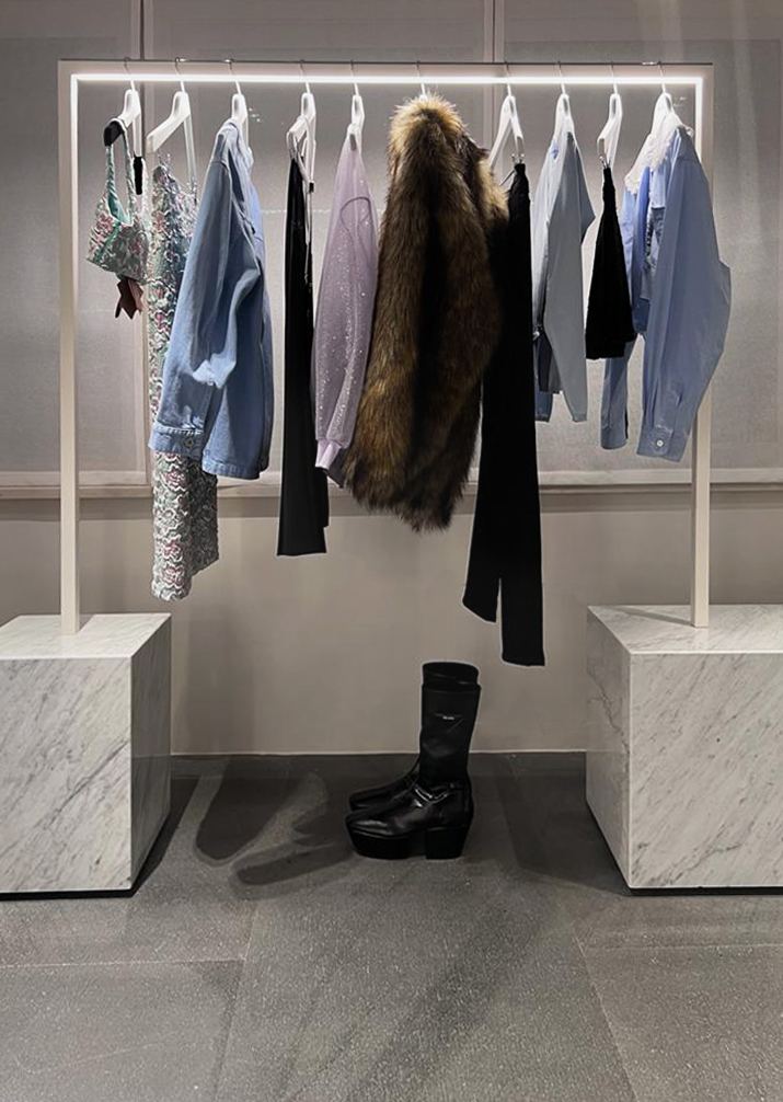 Minimal yet bold, the KULT concept store balances soft tones with vibrant accents and sculptural elegance. White marble, pastel highlights, and sleek shelving define a clean layout where fashion pieces are treated like objects of art. A contemporary retail space that merges clarity, contrast, and personality.